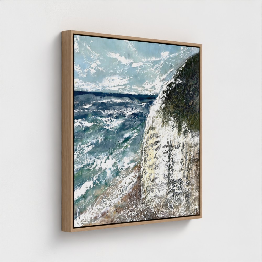 Bring the dynamic beauty of the ocean into your home with this expressive encaustic-inspired canvas print. Printed with sustainable water-based inks and protected with UV coatings, this piece is designed to last for years without fading. Finished with a durable floater frame in black, white, or oak for a sophisticated, modern look.
