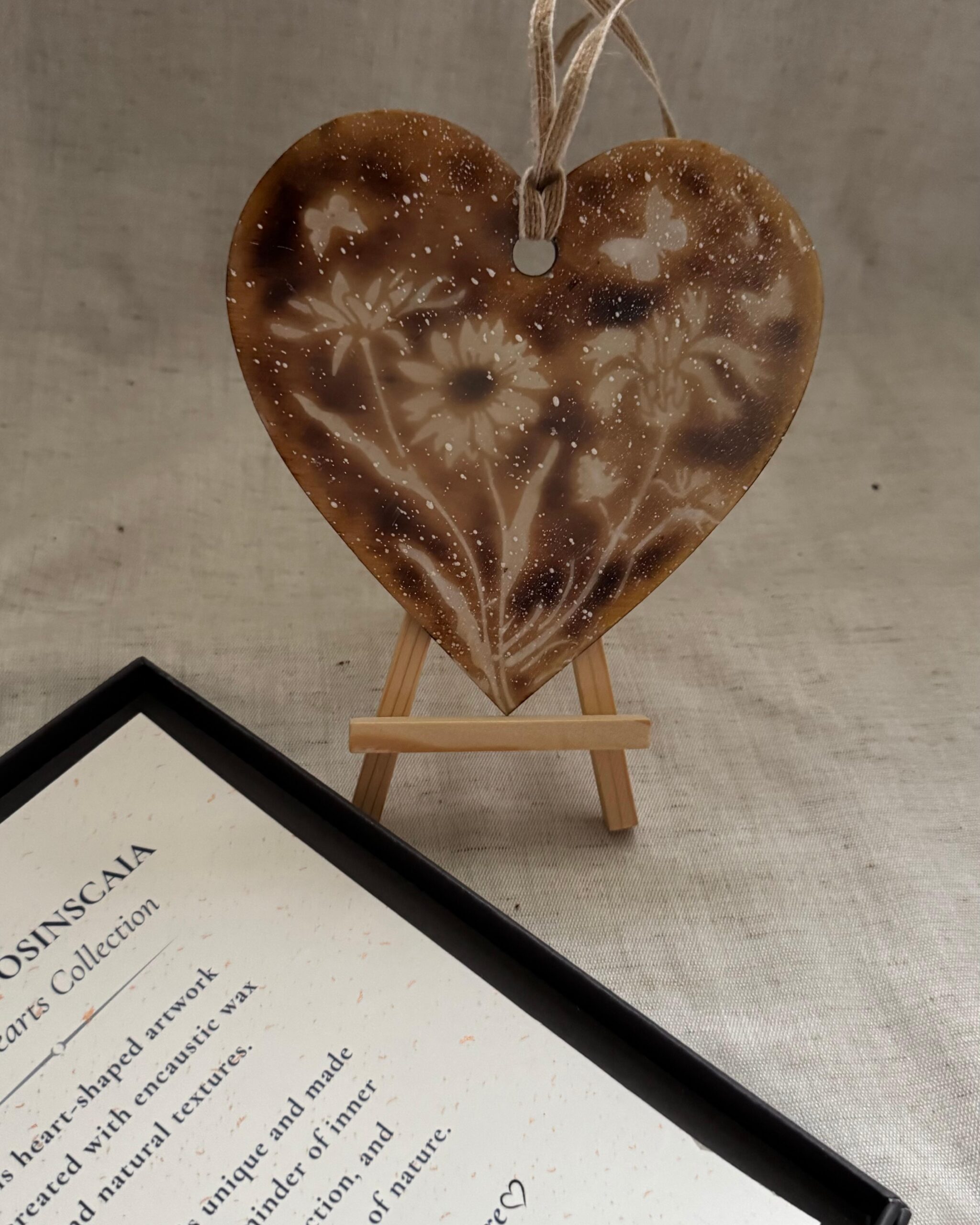Tags Abstract Encaustic, abstract expressionism, art gift idea, art inspired by nature, artisan gift, boho decor, botanical art, calming art, contemporary encaustic, emotional art, encaustic art, encaustic artist UK, encaustic wax, handmade art, handmade gift, healing art, Healing heart, heart ornament, heart wall art, home decor art, lime pigment art, meditation art, mindfulness art, Mixed Media Art, mixed media wax, modern abstract painting, Nature-Inspired Art, one of a kind art, one-of-a-kind artwork, silent strength art, slow art, small art gift, soothing artwork, soulful art, spiritual art, tactile art, textured art, textured painting, trauma to healing, wall hanging art, wax and fabric, wellness art